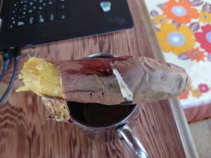 ねっとり系の焼き芋が完成し、おやつとなりました。